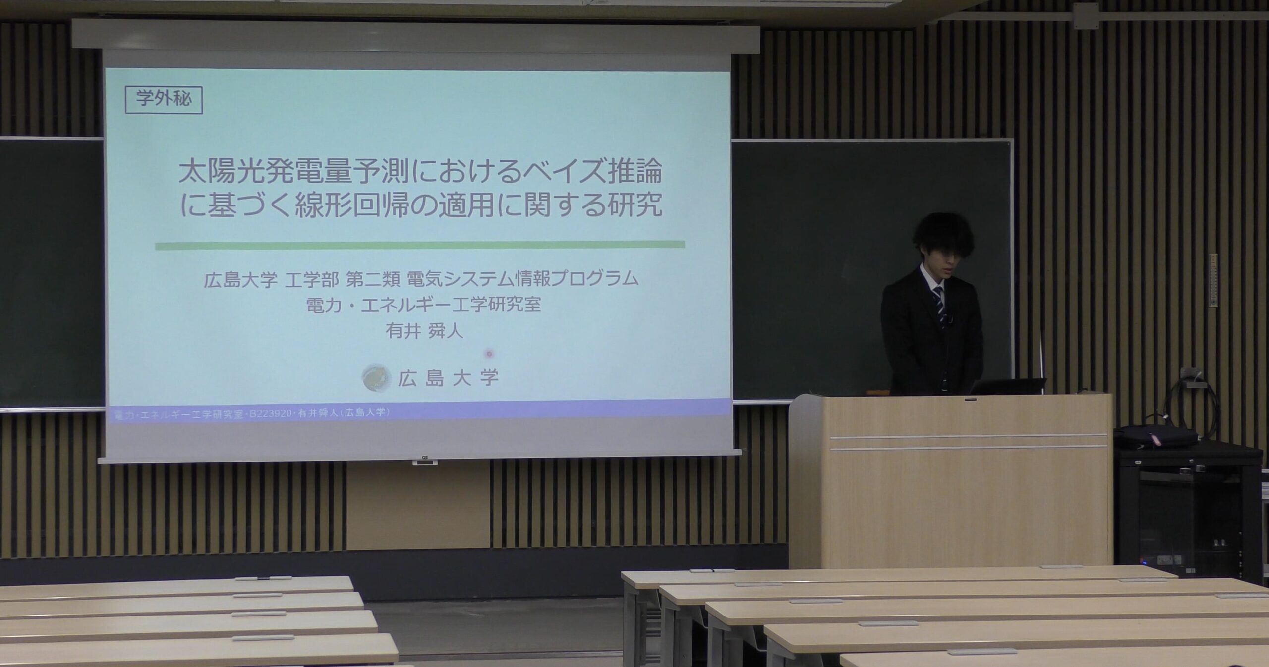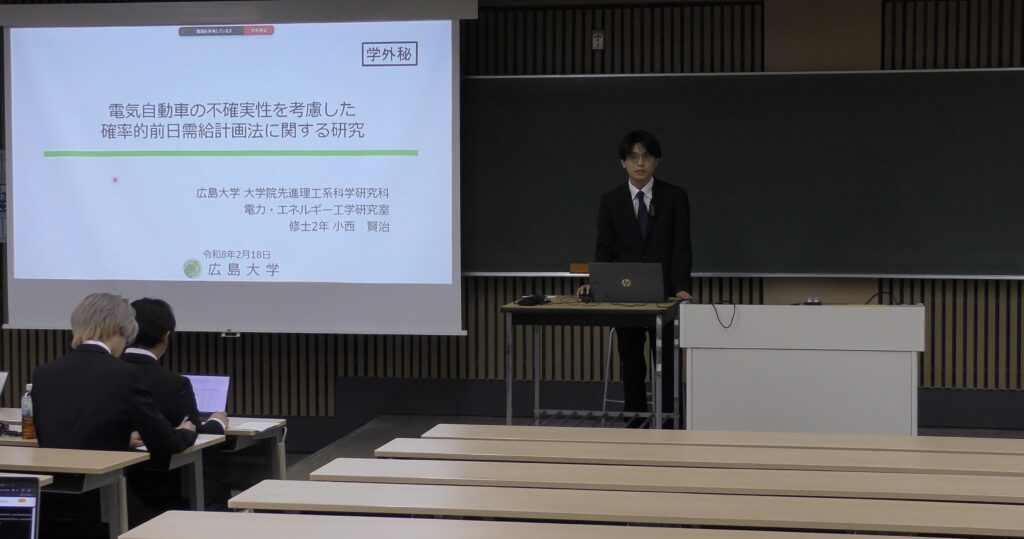 発表当日まで、3名は資料の修正や発表練習を何度も重ね、より分かりやすく、より的確に研究内容を伝えるための準備を進めてきました。本番では、その努力の成果が十分に発揮され、堂々とした発表が行われました。それぞれが自分の研究に対する理解と熱意をしっかりと伝えることができ、研究の集大成にふさわしい内容となりました。